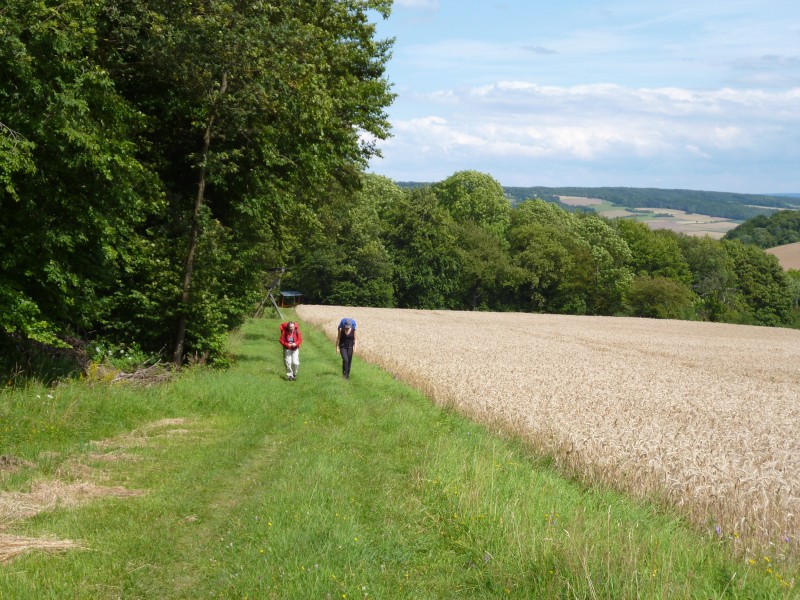 Von Ifta aus geht es heute über Netra, Wichmannshausen nach Hoheneiche. Kurz hinter Netra treffen wir auf Gertrude und Eve aus Marburg. Wir unterhalten uns über den Weg und andere Erfahrungen und ich erzähle viel über den Jakobsweg in Nordspanien. Gertrude möchte diesen Weg auch einmal machen, überlegt aber eventuell mit dem Fahrrad zu fahren. Ich erzähle Ihr von dem Buch „Ich bin da noch mal hin“ von Anne Butterfield und schlage Ihr vor zuerst dieses zu lesen um eventuell Ihre Meinung zu ändern den Camino mit dem Fahrrad zu machen. Denn „schnell“ ist ja genau das, was wir auf dem Pilgerweg abzulegen versuchen.