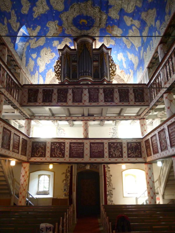 Alle zusammen schauen wir uns nun die Kirche von Wichmannshausen an, die eine interessante Vergangenheit hat. So erfahren wir von der Küsterin, dass die berühmte Stalingrad Madonna von dem evangelischen Pastor, Oberarzt im Lazarett und Künstler Dr. Kurt Reuber hier nach Wichmannhausen zu seiner Familie zurück gebracht wurde. Eine Replik ist hier in der Kirche zu Wichmannshausen zu sehen. Das Original hängt in der Kaiser-Wilhelm-Gedächtniskirche in Berlin.