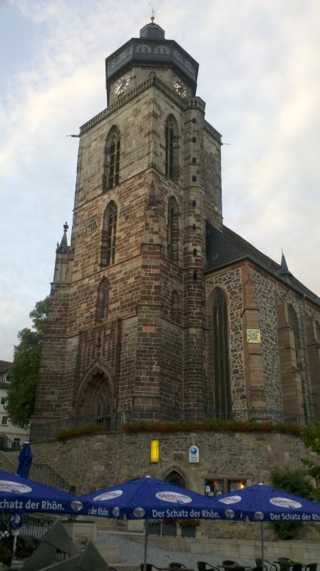 Nach ein paar nachgetragenen Tagen im Tagebuch gibt der Stift seinen Geist auf und ich werte das als Zeichen loszugehen.Wir treffen uns in Ostheim an der Dorfkirche wieder. Vor der Kirche steht eine sehr alte Linde, die den Eingang als eine Art Baldachin und Portal schmückt. Ihre Äste müssen schon gestützt werden und dienen sozusagen als Laubengang für das Eingangsportal zur Kirche.
