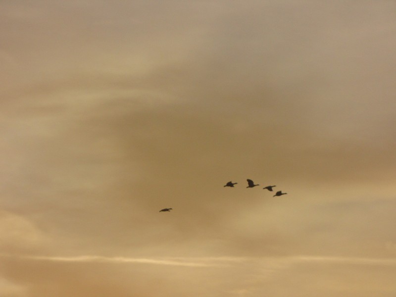 November 2011. Wir sind mit Freunden zu einem trockengelegten Stausee gefahren um Kraniche zu beobachten. Es war kalt und der Nebel lag schwer auf der Landschaft wie eine Wolldecke. Mysteriös sah es aus. Nur in der Ferne das Rufen der Kraniche, die hier auf Ihrem Weg nach Süden eine Rast einlegten. Dann starteten die ersten und wie ein Signal, erhoben sich die Kraniche eine Gruppe nach der anderen um Ihren Weg nach Süden fortzusetzen. Atemberaubend und Geheimnisvoll zugleich.